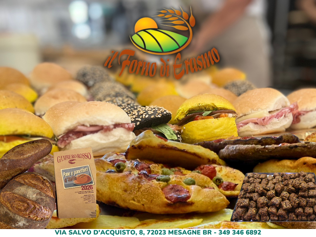 Pane caldo, focacce, piatti pronti, dolci e molto altro. Il forno di Erasmo, attività nata nel 1985, è sinonimo di qualità che valorizza il connubio tra tradizione a innovazione. Una passione di Famiglia tramandata da padre in figlie.