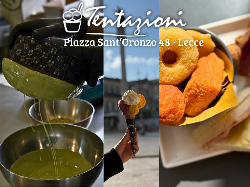 Immergiti nell’atmosfera di Piazza Sant’Oronzo assaporando prodotti artigianali. Che sia per una breve sosta o per celebrare il tuo evento. Ogni prodotto è realizzato artigianalmente: Gelati, Torte semifreddo, Cornetti, Piatti caldi, Yogurt e Sfizioserie.
